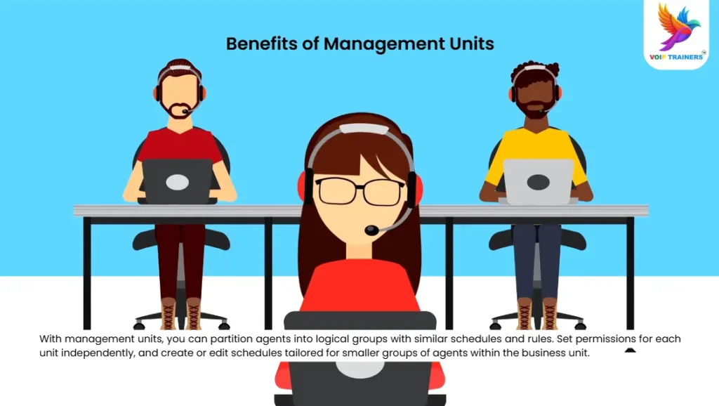 Management units are subsets within business units. They group agents based on similar rules, such as shift timings, time-off policies, and adherence requirements. This grouping allows supervisors to manage smaller teams with customized rules, ensuring flexibility and efficiency.